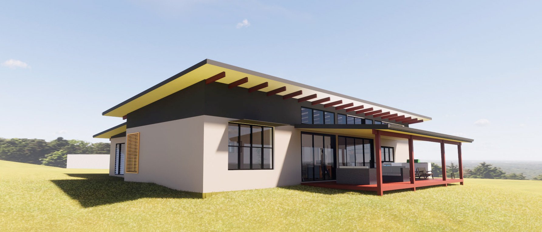 Designed by Sketchi Architects, this solar passive eco home allows for plenty of comfortable living space. It also has an off-grid solar system and rainwater collection set-up.